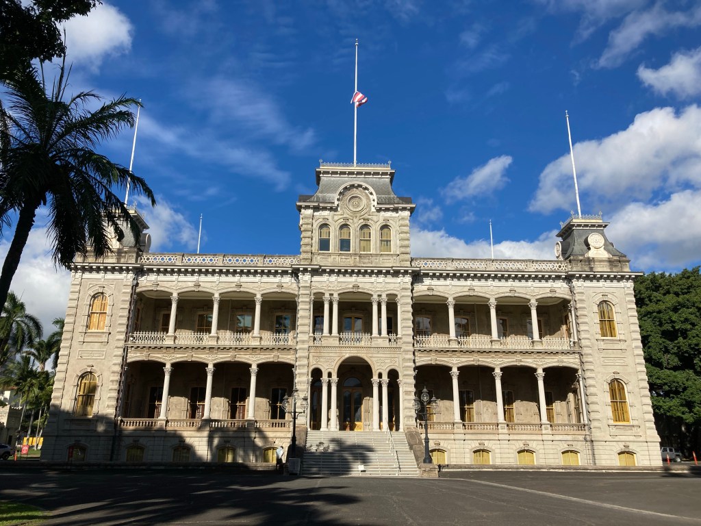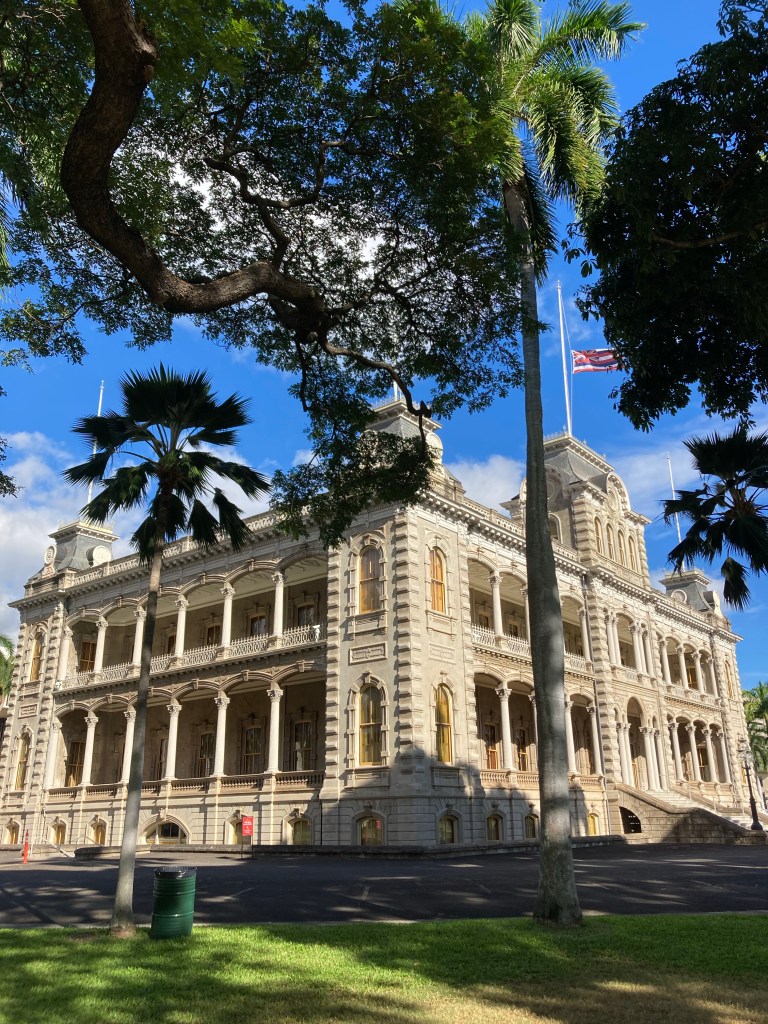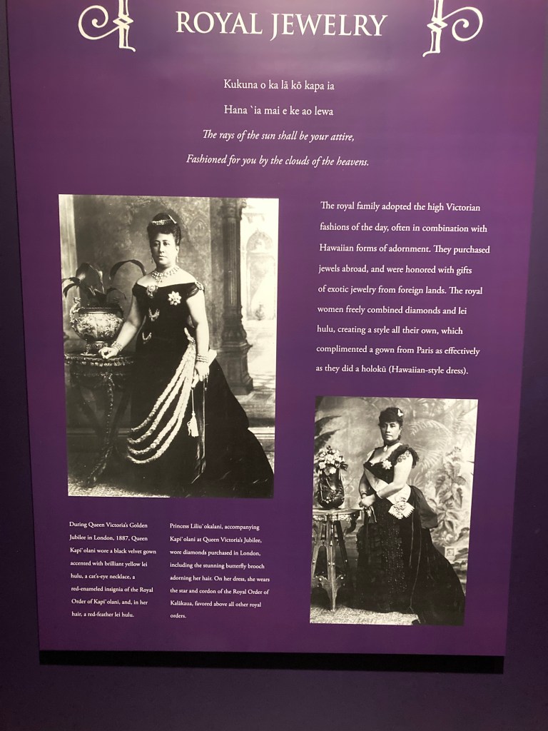 It’s a beautifully maintained historic building with a public restaurant on its first-floor patio. I wish I’d had the time to stop in, but the Palace gallery was calling. Specifically, an exhibit of the Hawaiian Royal Jewels.