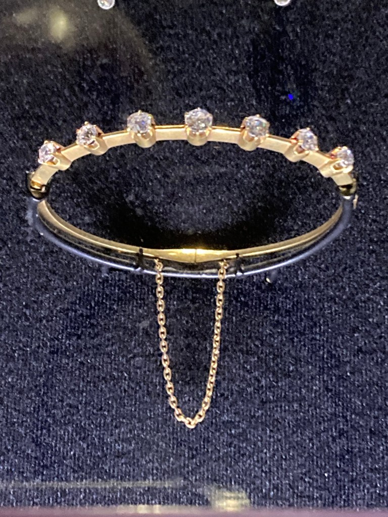 1) An early Tiffany & Co 18kt Yellow Gold Bangle Bracelet set with 7 Round Cut Diamonds