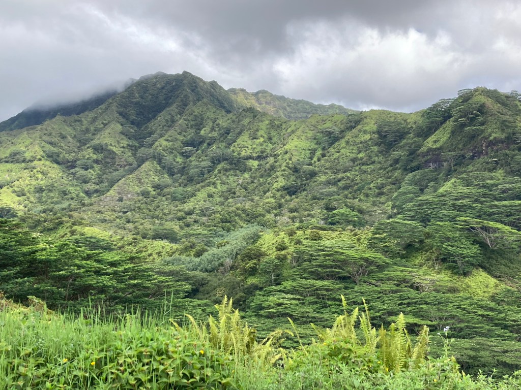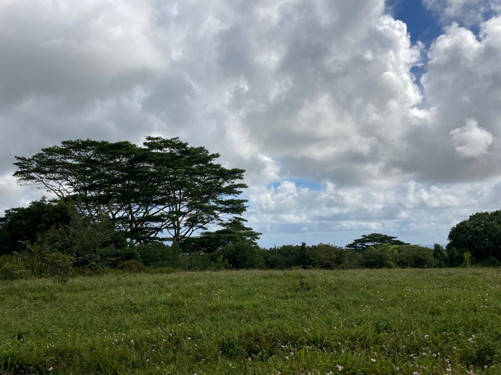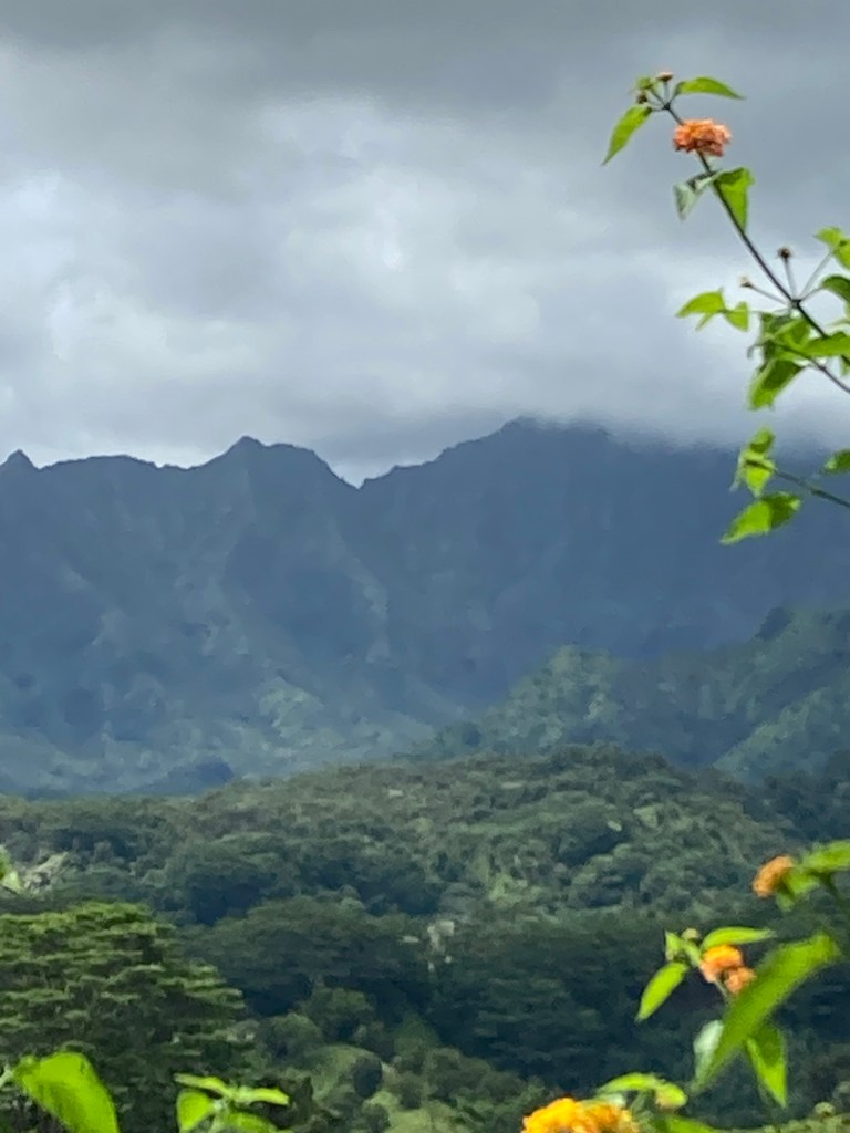 At 7,000feet high, Mt. Wai’ale’ale attracts condensation from any and all directions as fronts blow over the Pacific. (And as you can see from my photo, its peak is rarely visible.) Its ability to “make it rain” has been the primary source of Kauai’s erosion over many millennia: the source that carved Kauai into the grand, ruggedly beautiful island that it is today.