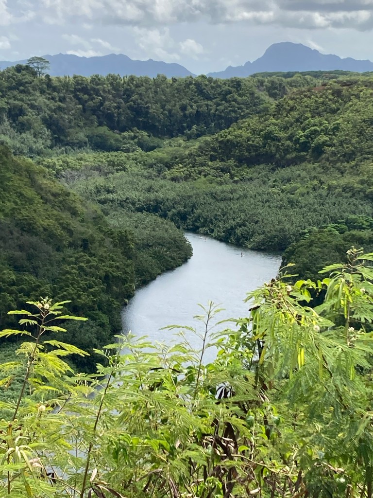 We stopped at Kapa’a Falls enroute back to the ship. Just one of the many waterways and waterfalls flowing throughout Kauai from the source at Mt. Wai’ale’ale – upper left corner of the photo. Mahalo Mt. Wai’ale’ale!!
