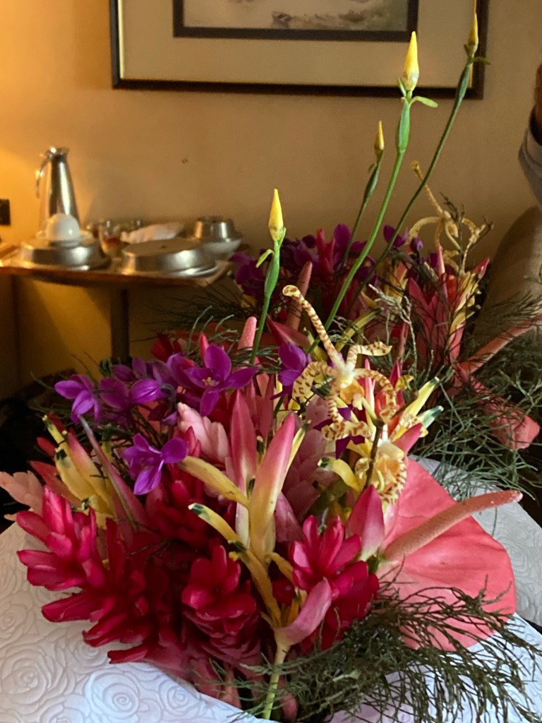 I made it back to Suva around 5:30, just in time to visit the city market. It’s a full city block of stand after stand of wonderfully colorful tropical fruits, vegetables and flowers. I picked up a lovely flower arrangement my room for $10 Fijian dollars, $4.43 US!!