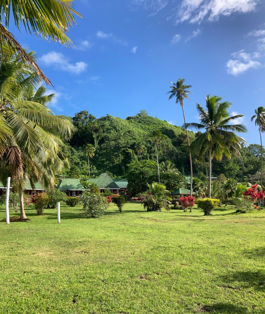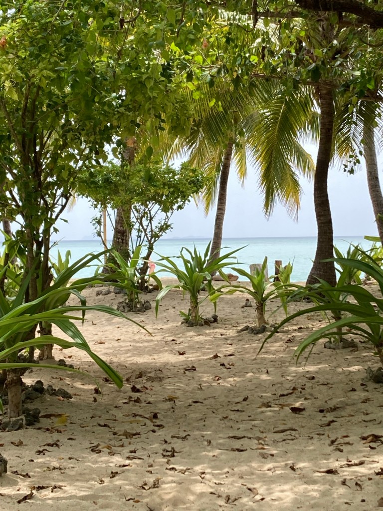 After lunch, most of us had a quiet, restful time, either in our cabanas or under shade of trees. There were no flies to disturb our languor. It occurred to me that we had become our own tribe, sharing a communal meal and then slipping off to rest close to the earth and each other, breathing in the same sweet restorative air of Polynesia. Or maybe I dreamt it, because I definitely had a nap. Afterwards, I got a few pics of the island’s interior during our dwindling minutes.