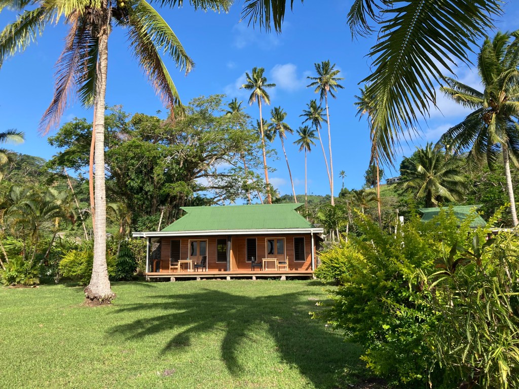 I managed to hail a tech savvy cab driver, and we were off to Daku Resort Cabins, just 1 km away. The resort was a scattering of rustic cabins, all with sea views and sea breezes,up a gently sloping hill to a “great house” atop where the front desk, bar, restaurant and Wifi were located.