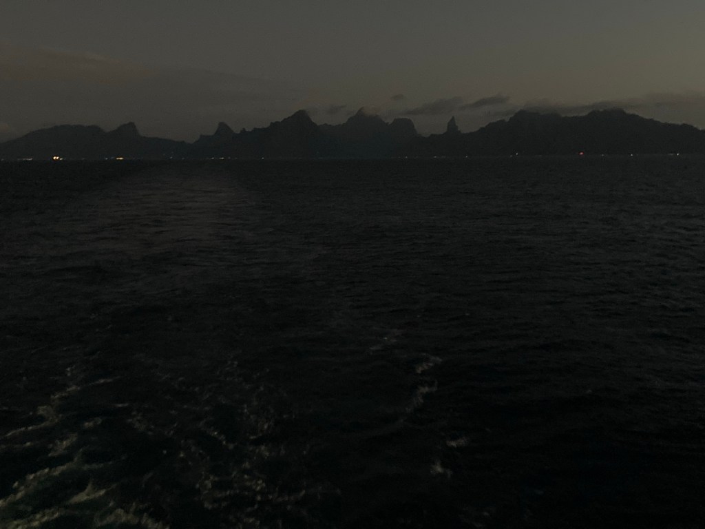 Well after the sun had set and we were far out to sea, Moorea’s saw-toothed mountains could still be seen.