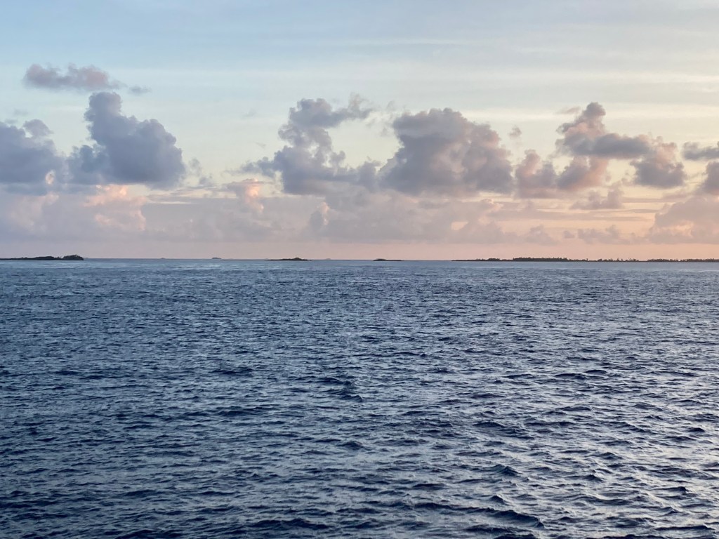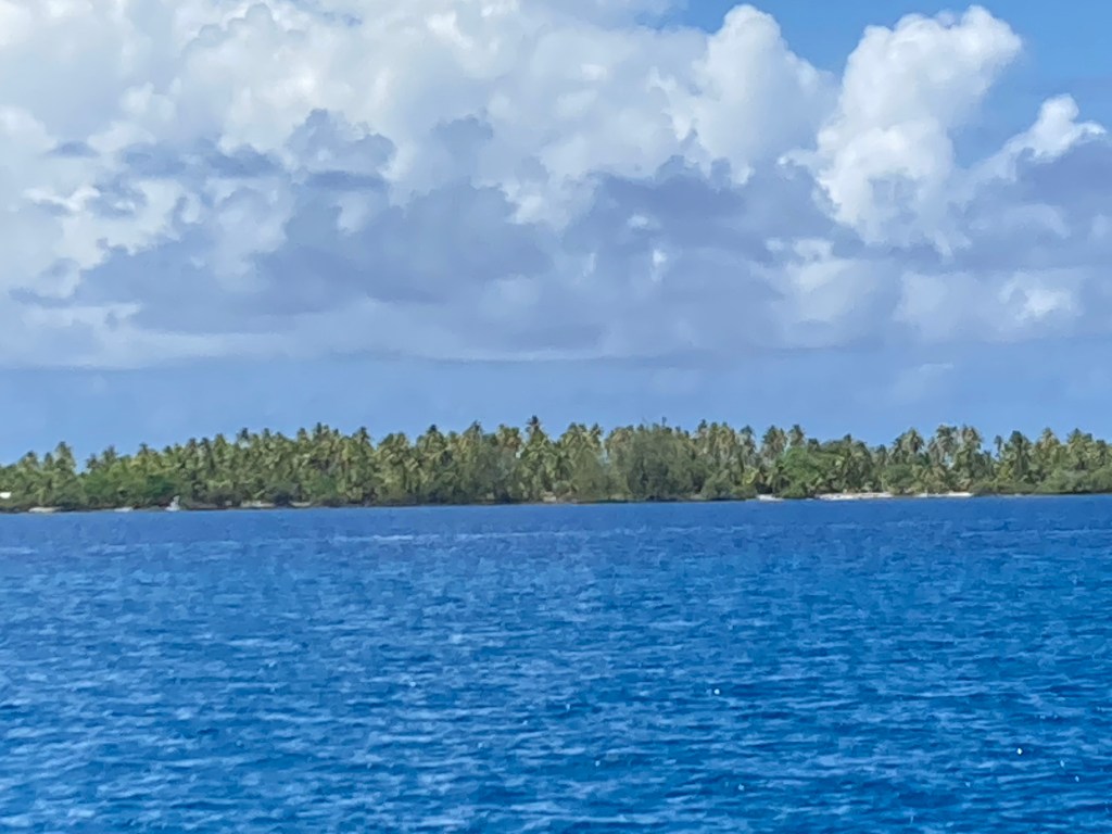 Study their geography and you will discover a palimpsest of a an ancient lost world. Unlike the constancy of the continental plates that have surfed our planet since Pangea, the Tuamoto Island chain came and went. All that remains today are the reefs that once fringed the islands when they were at their maximum width. As we wended our way through them south to north, we could see only the coral reef footprints and occasional stretches of sandy shores a few feet above sea level.
